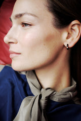 Emaille Diamant Hoops - Schwarz - Roségold