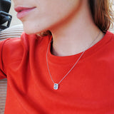 Blautopas Diamond Halo Halskette - Weißgold