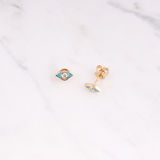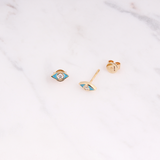 Emaille Evil Eye Diamant Ohrstecker - 8mm - Turquoise - Gelbgold