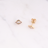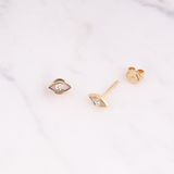 Emaille Evil Eye Diamant Ohrstecker - 8mm - Off-White - Gelbgold