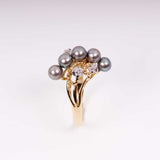 Vintage Ring Graue Akoya Perlen - Gelbgold
