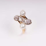 Vintage Ring Perlen Diamanten - Gelbgold/Weißgold