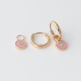 Emaille Diamant Plättchen Hoops - Rosa - Gelbgold
